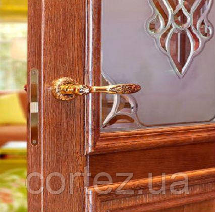 У дверях, що шпонуються, декоративне скло вставляється зверху. Для його заміни необхідно зняти полотно з петель, виміряти отвір, після замовлення скла акуратно вставити його і зафіксувати силіконом. Ця нескладна дія надалі виключить ймовірність деренчання.